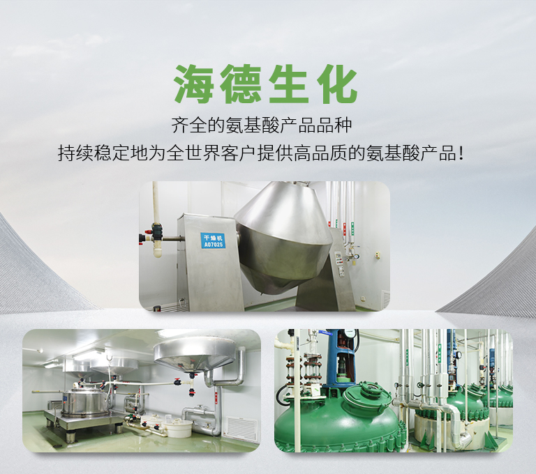 寧波市鎮海海德生化科技有限公司近40年來一直致力于氨基酸及其衍生物產品的研發、生產及銷售。產品被廣泛應用于食品、保健品、醫藥、化妝品、飼料等各大產業。海德以其齊全的氨基酸產品品種,優良的品質和商業信譽、悠久的歷史在業內具有極高的聲譽和知名度!